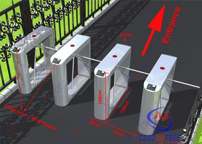 مراقبة الوصول لمبنى المكاتب الإلكترونية بوابة عجلة ثلاثية مع قارئ بصمات الاصابع RFID