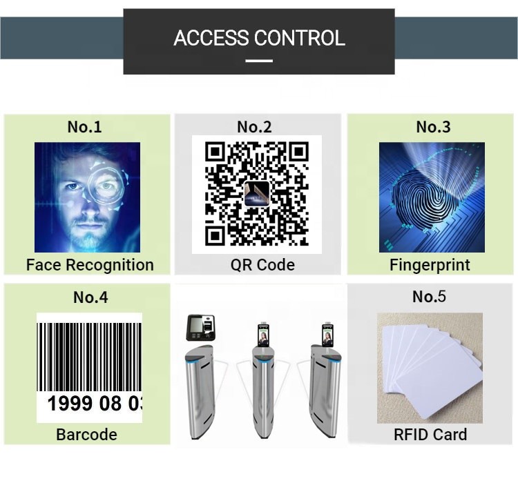 1. يمكننا أن نقدم نظام التحكم في الوصول:تمييز الوجوه/بصمات الأصابع / قارئ البطاقة / رمز الاستجابة السريعة / نظام تذكرة الباركود.
